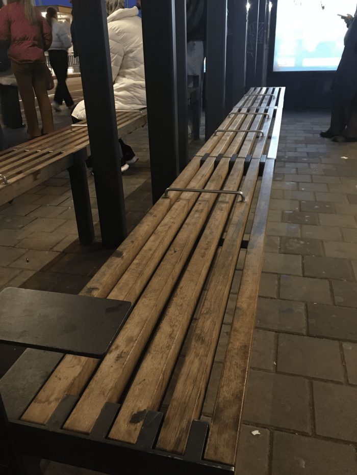 Tady si nelehnete! Brněnské řešení problematiky bezdomovectví. Brno, prostor před hlavním nádražím. Foto: NESEHNUTÍ